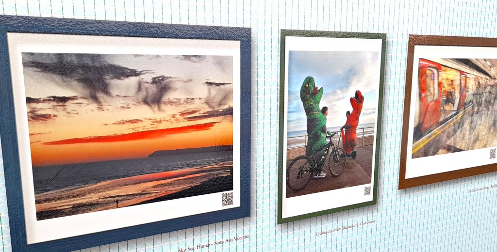 What a wonderful and clever idea to have a gallery on that bridge! Of course, the bridge itself and looking down and the train platforms below has an aesthetic quality itself, but the hanging art on the bridge adds some extra to it. I did spot a cat among the paintings/prints 😺