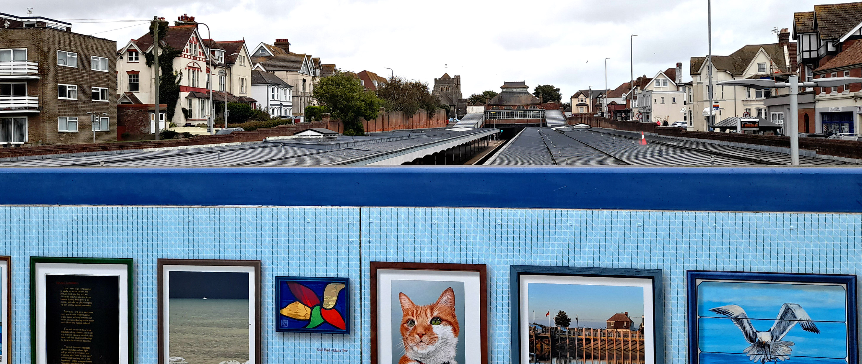 What a wonderful and clever idea to have a gallery on that bridge! Of course, the bridge itself and looking down and the train platforms below has an aesthetic quality itself, but the hanging art on the bridge adds some extra to it. I did spot a cat among the paintings/prints 😺