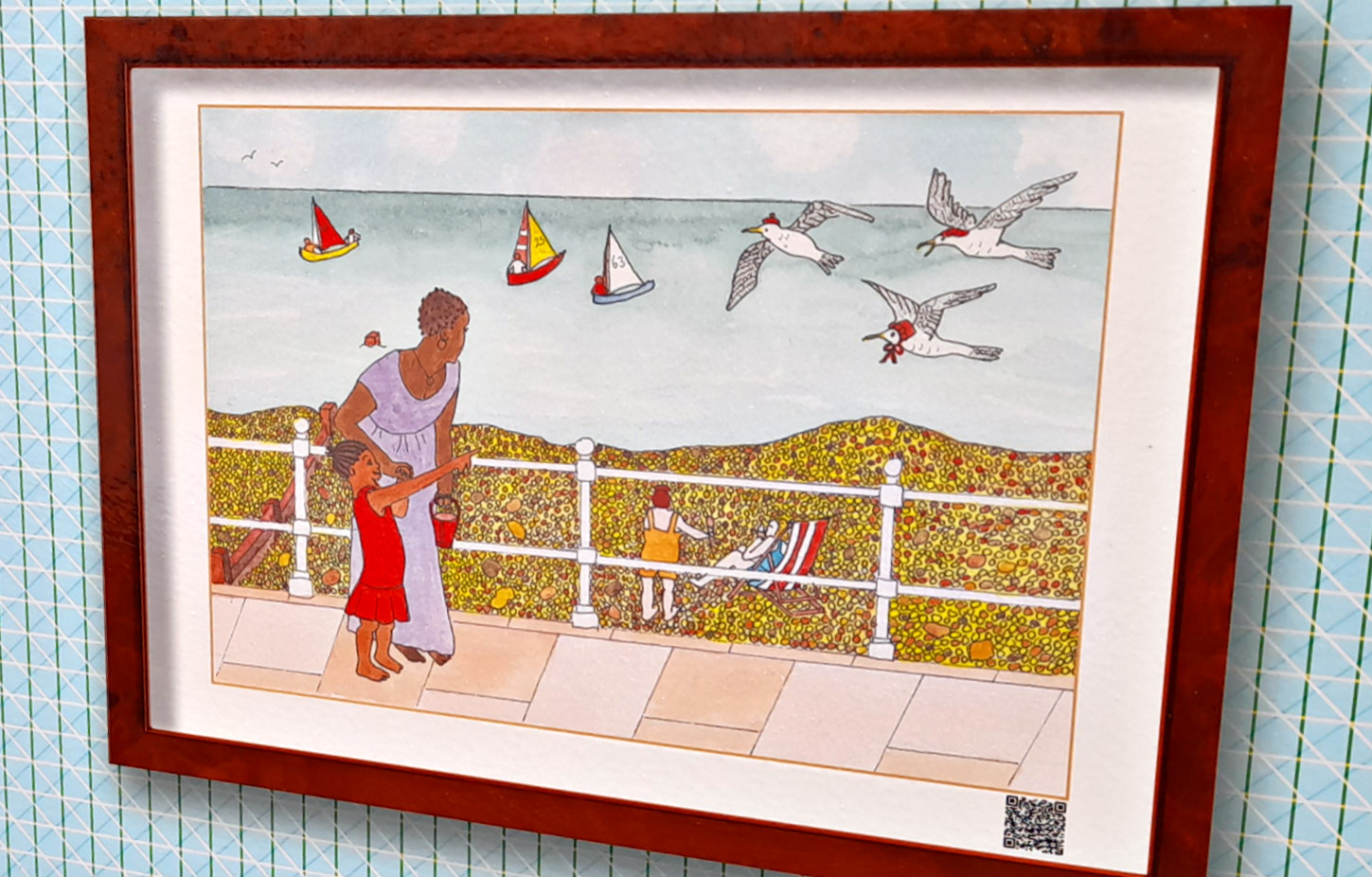Three or so years ago, someone in our town came up with the bright idea of turning the bridge that crosses the railway station into an art gallery! Local artists were invited to submit works to be displayed. Every now again the pictures are changed. I brightened up this miserable morning by taking a few snaps to show you!.