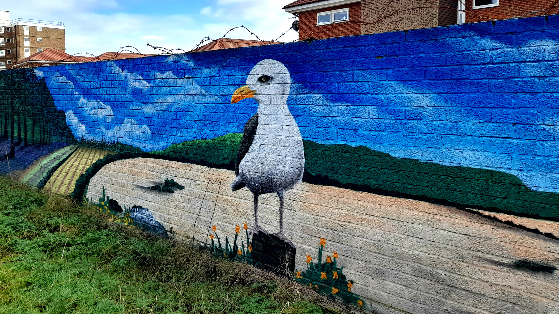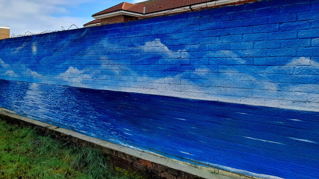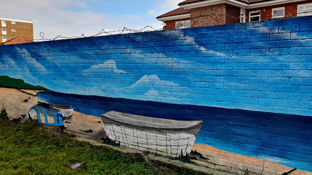 Not far from me, there’s an alley behind some seafront appartment blocks. The long wall that runs along one side has recently undergone a bit of a paint job!.